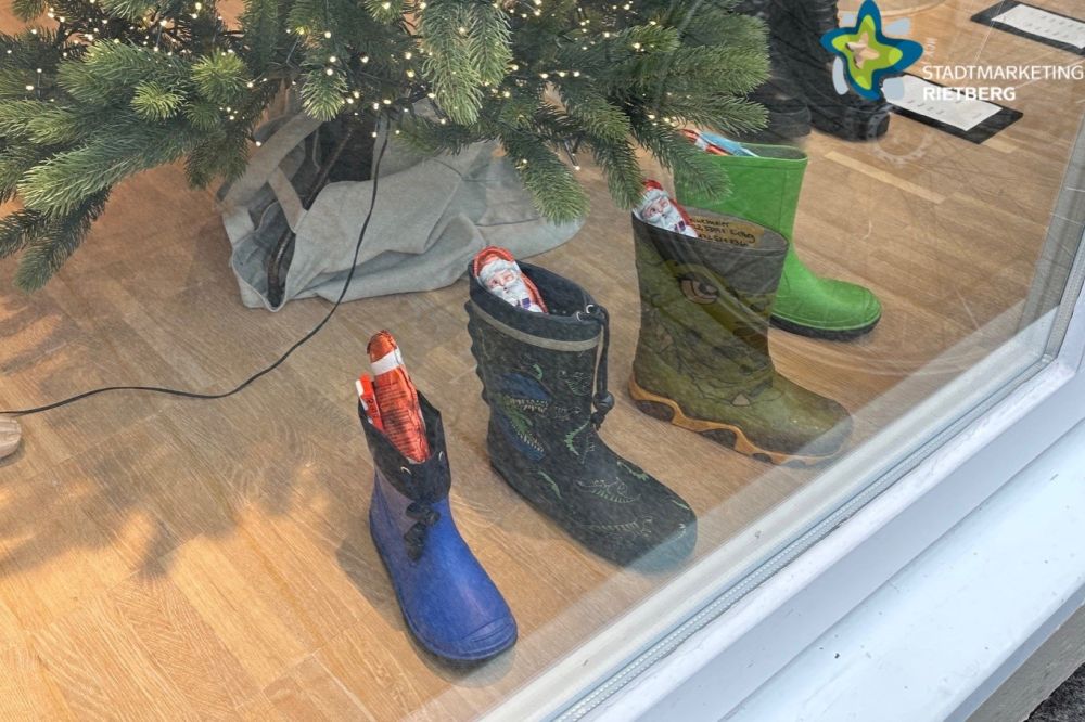 Kinderstiefel werden mit süßen Leckereien befüllt
